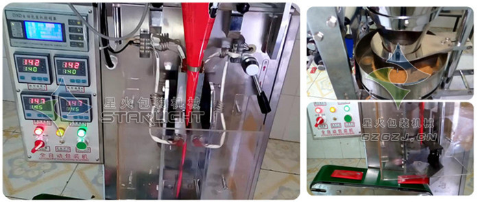 該雞精自動包裝機(jī)型號3220屬于顆粒自動包裝機(jī),適合包裝顆粒狀、片狀、條狀、粉劑,如茶葉、固體飲料、餅干、大米、薯片、蝦條、寵物食品、花生、咖啡、奶粉等。
