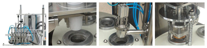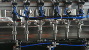 3.該灌裝機有六個灌裝頭,由六個氣缸驅動、灌裝物料更加快速精確;