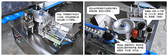 本機采用全機械式傳動,封閉式傳動箱,采用粘接劑貼附各種圓瓶標簽,穩定可靠,占地面積小,可任意移動調整作業場所并適合單機或連線使用。根據客戶需求,還可添置打印裝置。